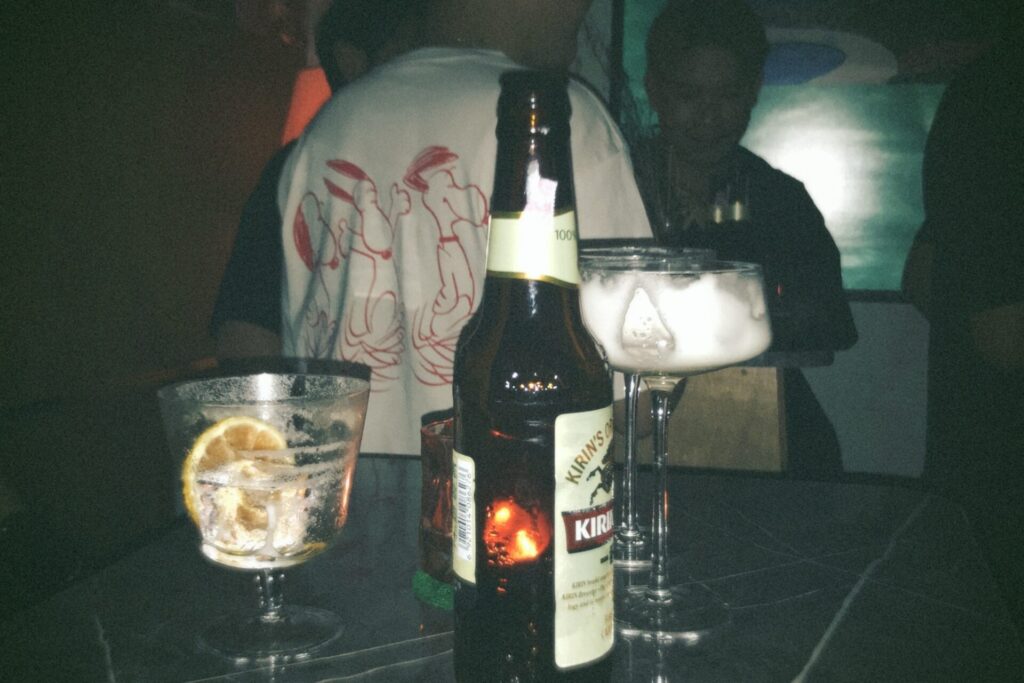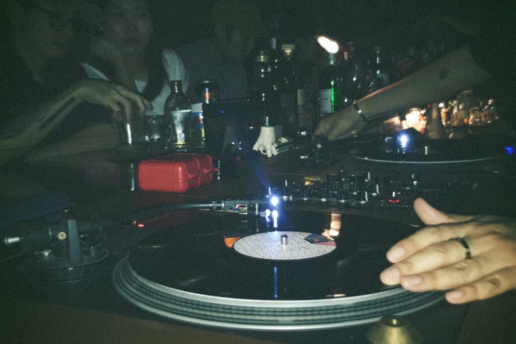 バーテンダー2人とウェイターが数人、バーカウンターは常に混み合っていて、バーテンダーは絶えずコンパクトな3ピースシェイカーを振っていた。彼らの背にはレコード棚が設けられ、そこにぎっしりとレコードが詰まっている。飾られたレコードを見る限り、大瀧詠一、竹内まりあや宇多田ヒカルなど日本のアーティストが時を越え大きく彼らの耳を刺激し、心を掴んでいることは一目瞭然であり、ひとつの時代の音楽が評価され人々を夢中にさせていることに、すっかりと誇らしげに思ったものだ。そんなわけで前野曜子や阿川泰子をセレクトしてプレイしたほどだった。