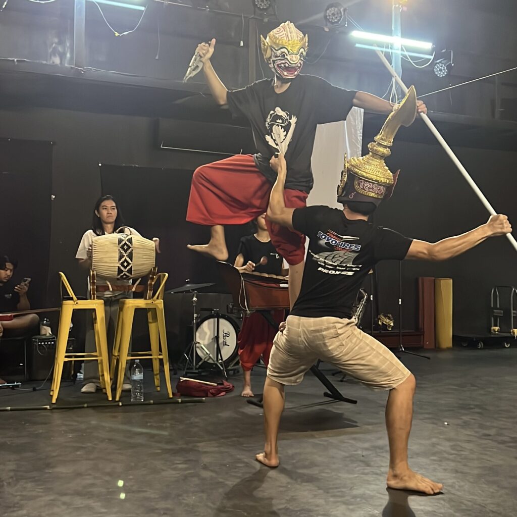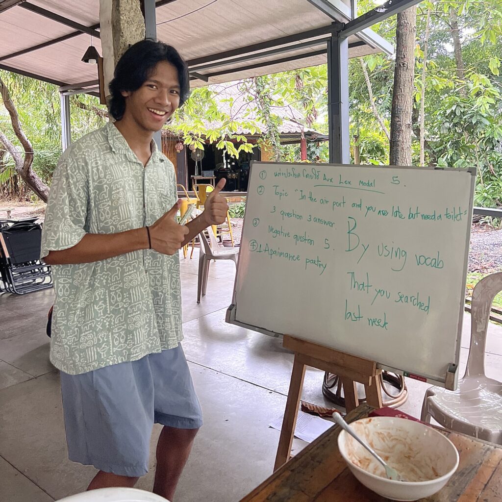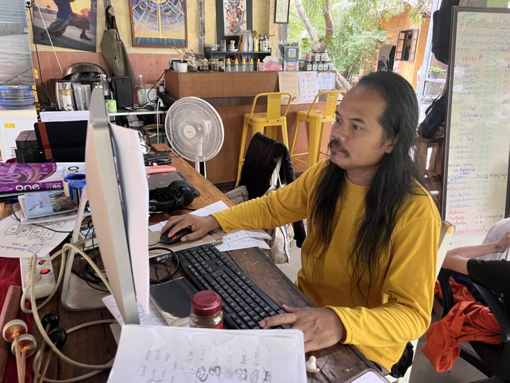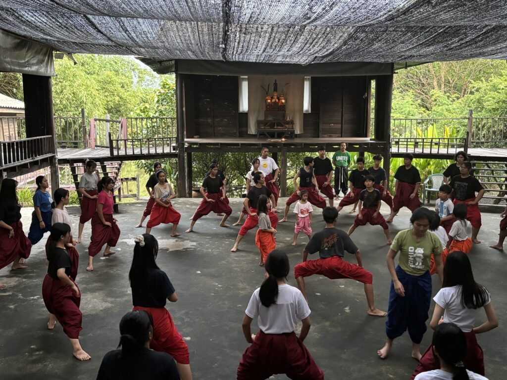 先生の1人がここを案内してくれた。建物は伝統的なタイの高床式の木造建築。開放的で広々とした踊り場を囲うように仏壇があって、図書室と音楽室とアートが飾られた部屋とがそれぞれ部屋へ渡って歩けるよう囲うように並んでいる。と言ってもここでは内と外との差があるようでないのだが……。