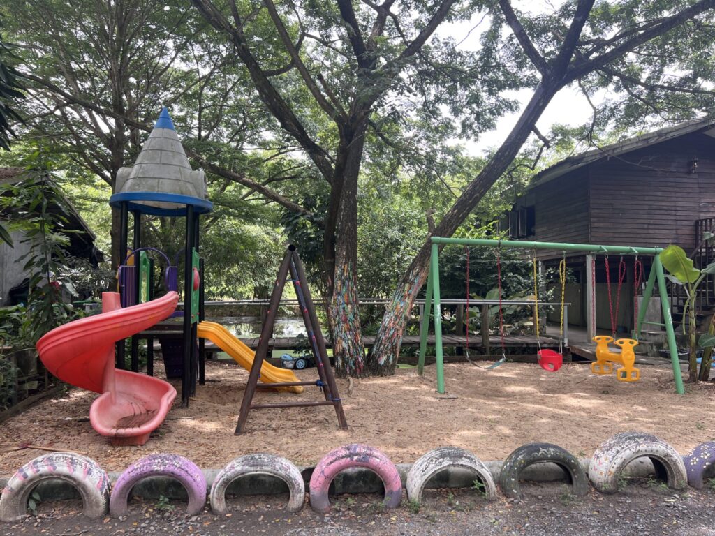 それほど広くない土地に植物は上手く植えられ、子供たちが体を動かして遊べるようにあちこちに工夫が加えられてあって、それに周りにはいくつもの小ぶりな池がある。その池の浅瀬にたくさんのアヒルが泥の上で昼前の日光を気持ちよさそう浴びていたので、思わず池に伸びる橋を渡って近づくと、それが癪に触った様子で、アヒルは立ち上がり「グゥァグゥァ」と怒鳴りながら僕から離れていった。その橋を渡り終えると、刈り終えたばかりの美しい稲の田園風景が目の前に広がった。